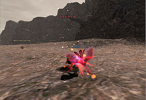 途中でNMに遭ったので倒してみました。強さは周囲の鳥と同じくらいですが攻撃に毒の追加効果があるようです。