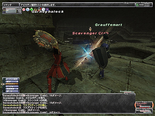西アルテパで二手に分かれ、それぞれエリアの端にあるスイッチを操作し、J-9から入る流砂洞で合流した。慣れないエリアで「30分経ってしまったらどうしよう」等と内心かなり焦っていたが、からまれたり道に迷ったりすることもなく、無事アルテパゲートを開けてNMが出るエリアに到達することができた(最後でほんの少し道を間違えたけど)。